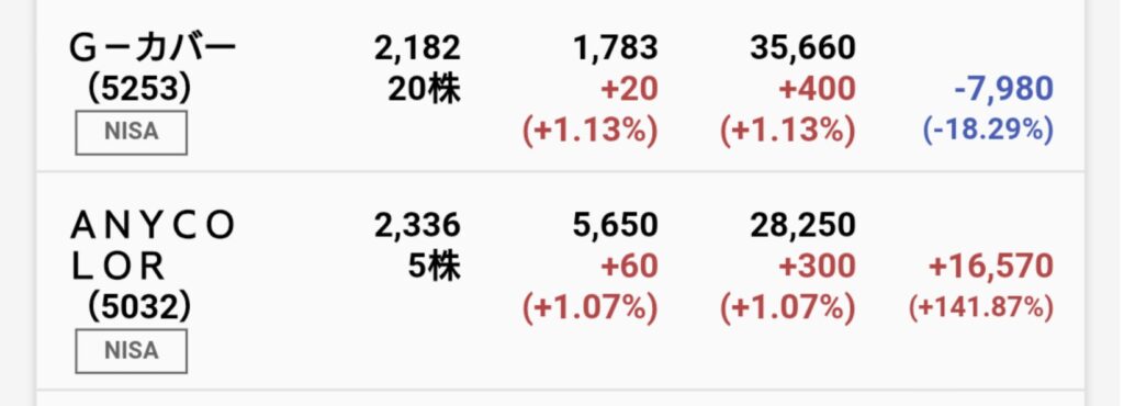 結構前にVチューバー界隈はこれからも成長するんじゃないかとちょっとだけ株買ってたんですが、現在のところ明暗が分かれていますね。押し目買いの結果増減率に対してマイナスがだいぶ大きくなってしまっています