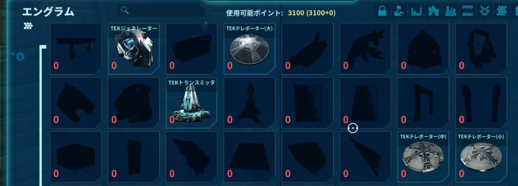 ARK310サーバーはほぼ全てのエングラムをレベルアップと同時に自動で取得してくれるのですが、さすがにTEKは自力取得だろうとしばらく未確認でした